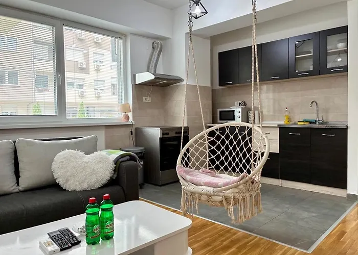 W skład obiektu noclegowego wchodzi kuchnia z lodówką, piekarnikiem i szklanymi naczyniami do samodzielnego przygotowywania posiłków. Od apartamentu do lotniska Skopje 30 km.